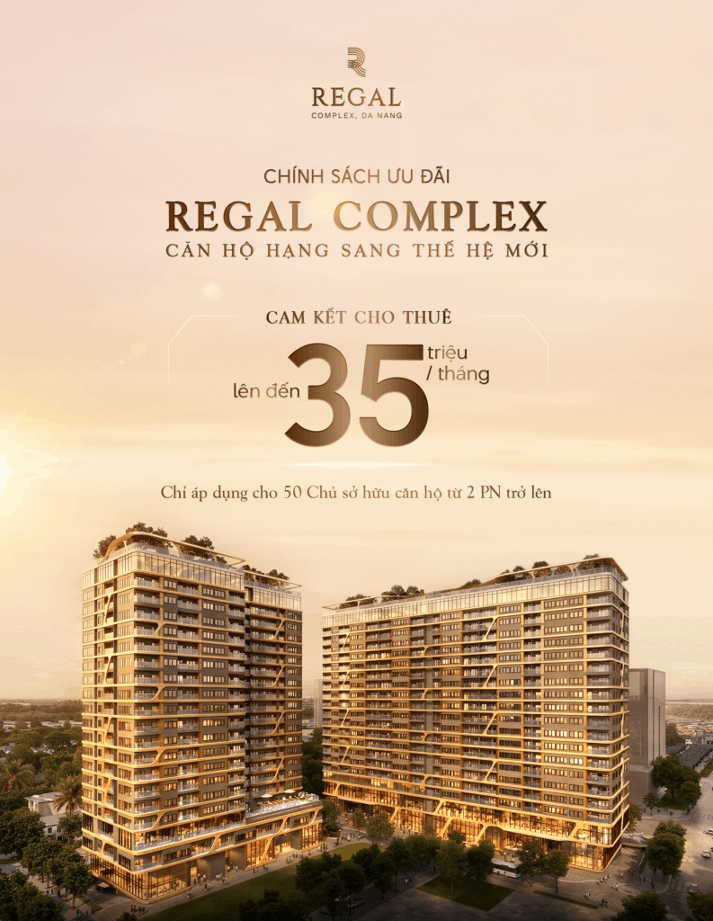 Regal Complex Đà Nẵng là biểu tượng mới của bất động sản hạng sang miền Trung, kết hợp hoàn hảo giữa vị trí vàng – tiện ích 6 sao – tiềm năng đầu tư. Đây chính là lựa chọn lý tưởng cho những anh chị đang tìm kiếm không gian sống đẳng cấp và cơ hội đầu tư sinh lời lâu dài.