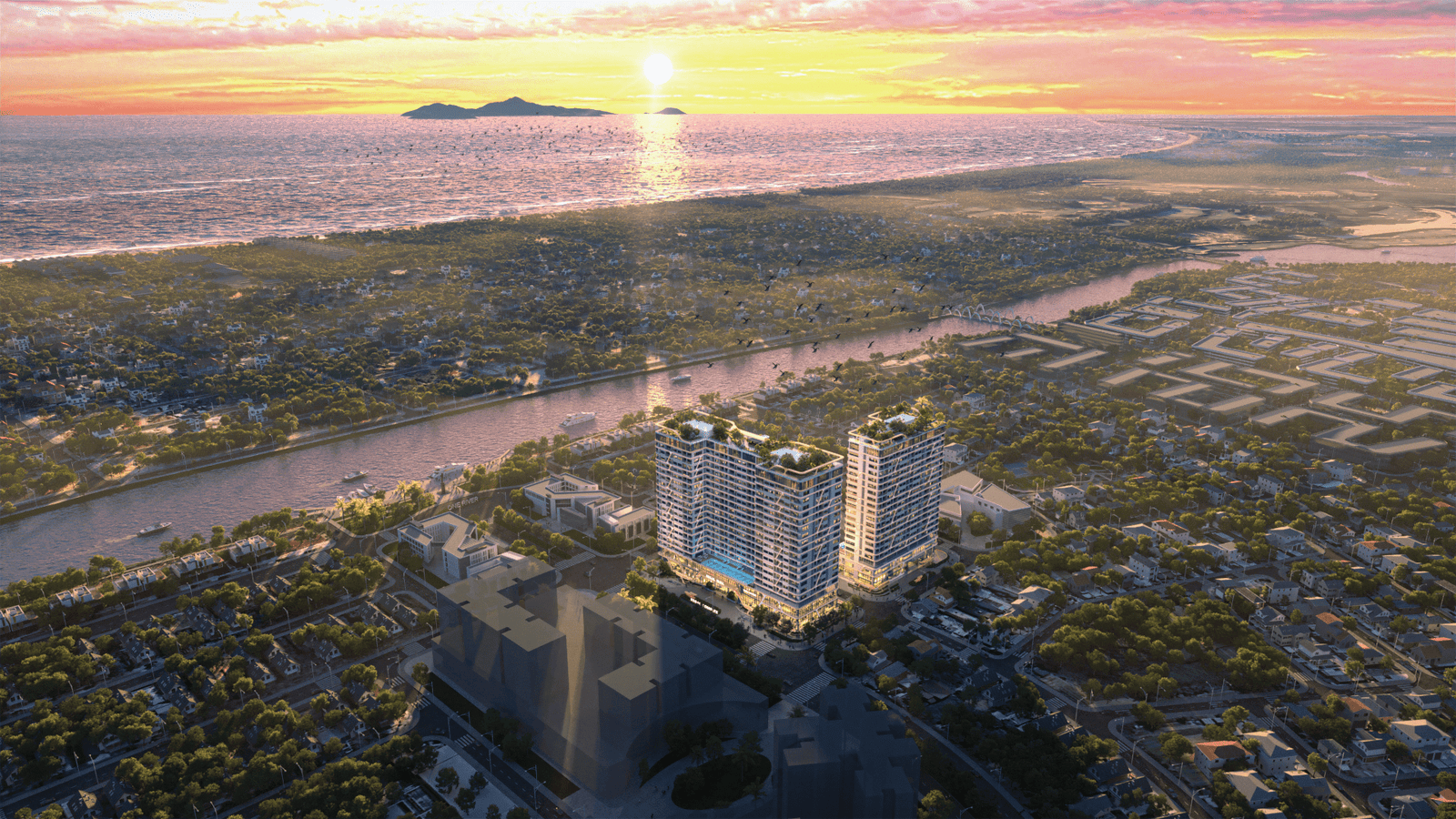 Vị trí này mang lại lợi thế kép: vừa thuận tiện giao thông, vừa sở hữu tầm nhìn hướng sông và biển.