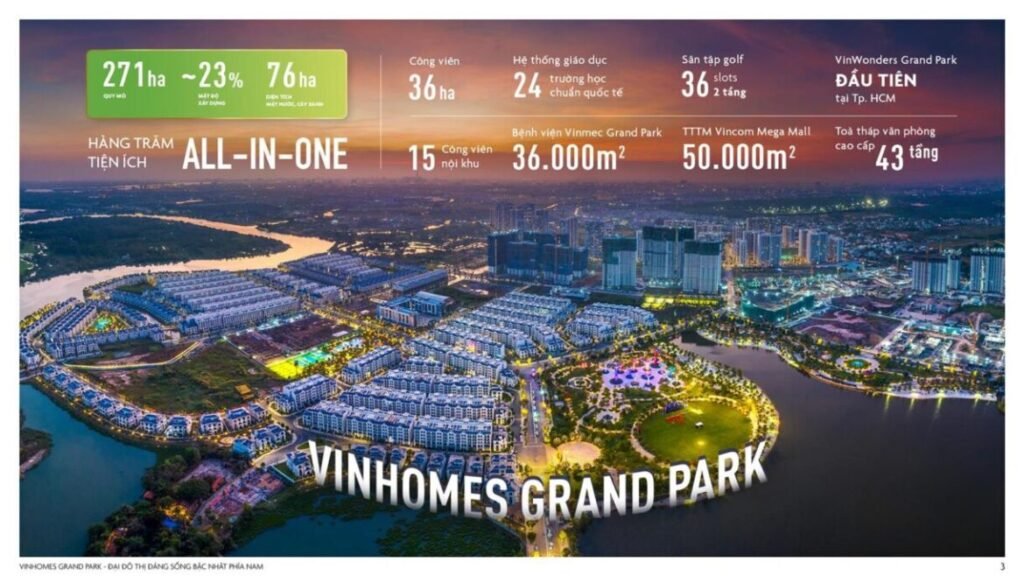| Vinhomes Grand Park | TP. Thủ Đức, TP.HCM | Đại đô thị thông minh | Công viên 36ha, công nghệ 4.0 |